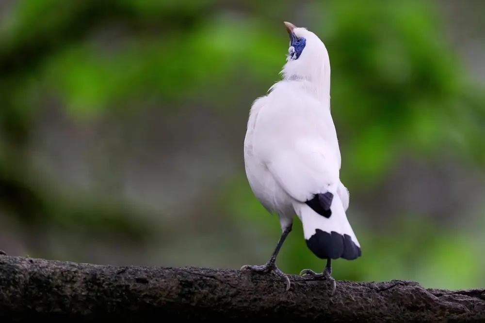 The Bali Myna uses a wide range of vocalizations and not just songs. It can produce over 20 distinct sounds, including clicks, whistles, and harsh calls.
