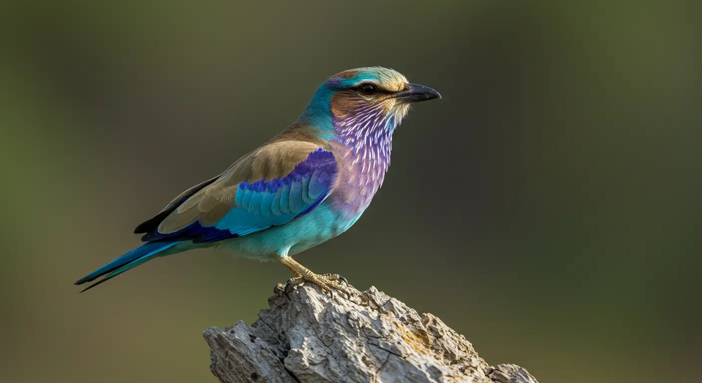 The European Roller’s bright blue color isn’t just common blue. Its feathers blend with turquoise and sky blue tones. The feathers are a mix of bronze-brown on its back and wings.