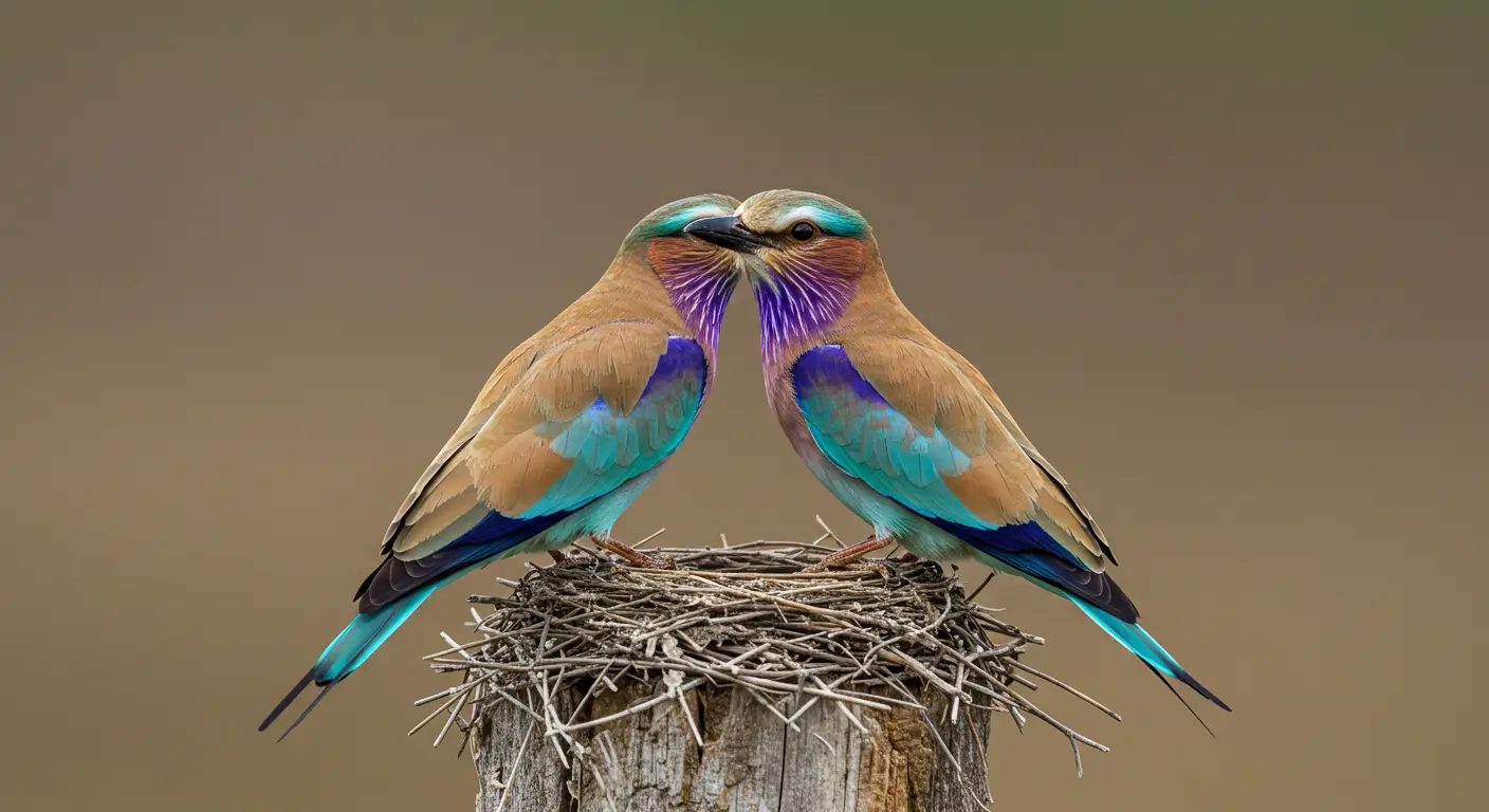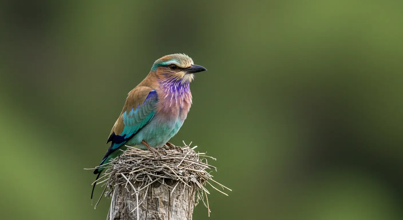 European Rollers don’t build open nests. They prefer to nest inside cavities like old woodpecker holes or abandoned structures. They can’t dig their own holes unlike woodpeckers.