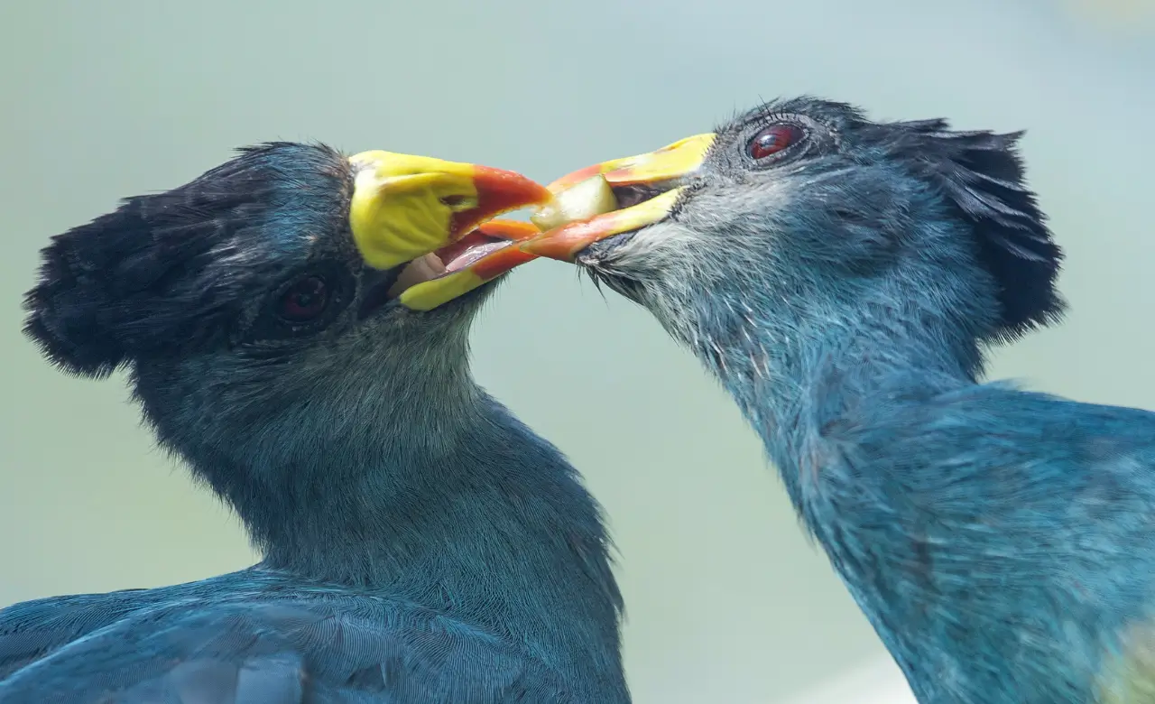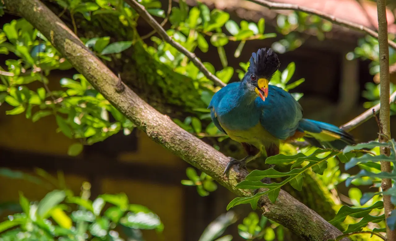 The Great Blue Turaco is known for its calm and peaceful nature. It rarely gets into fights with other birds and often prefers staying in groups.