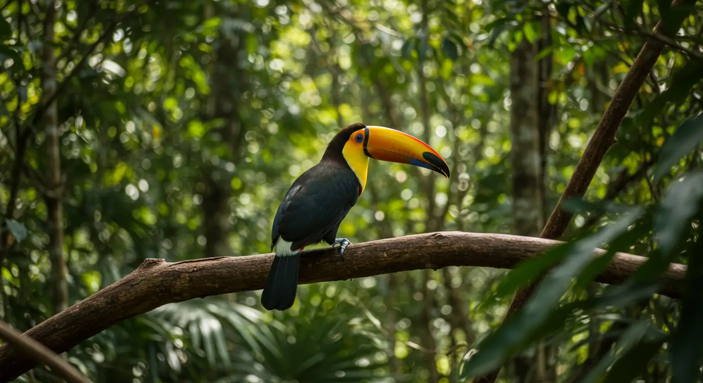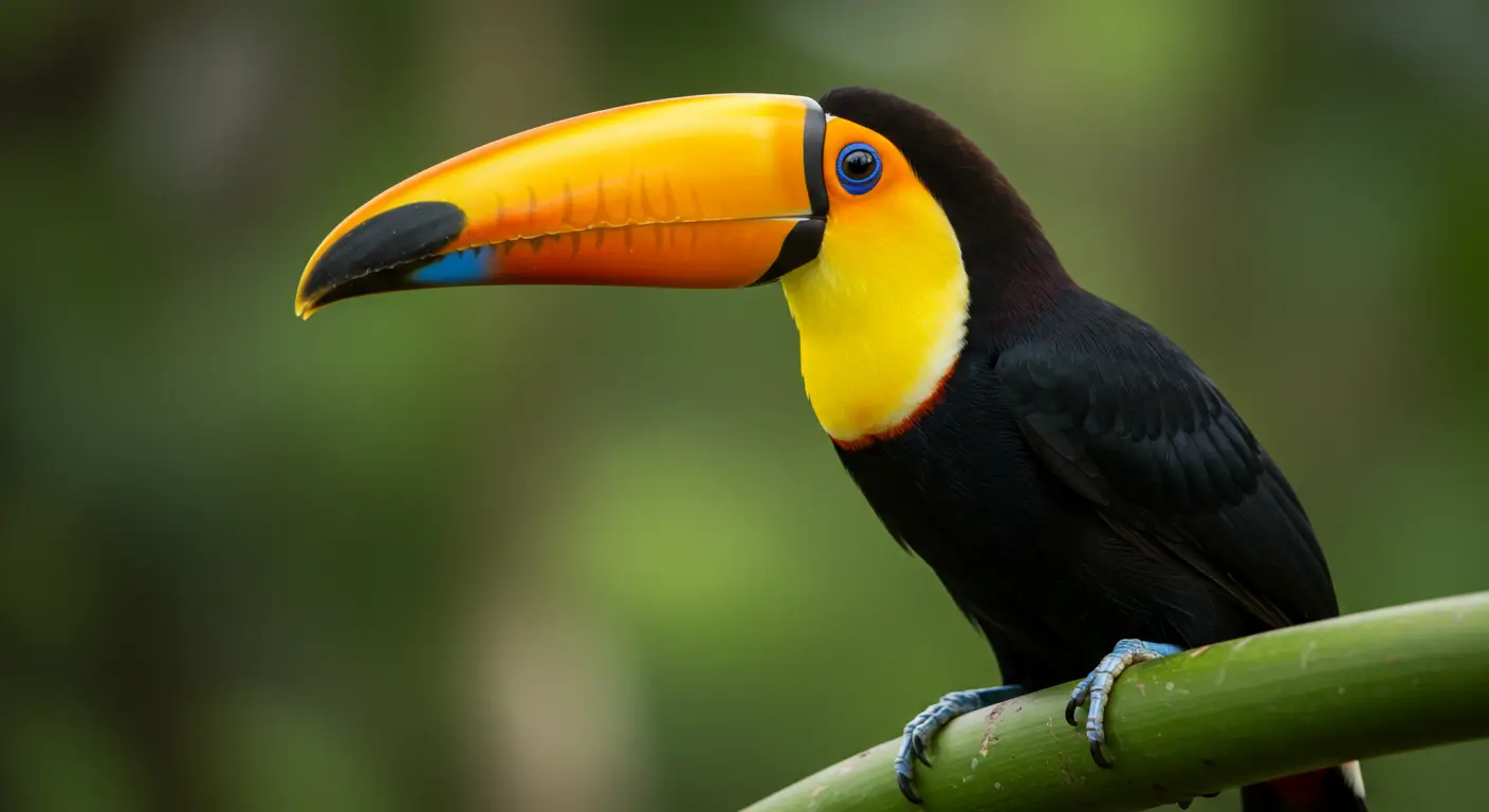 The Keel-Billed Toucan is a colorful bird known for its large and attractive beak. It lives in tropical rainforests, mainly in Central and South America.