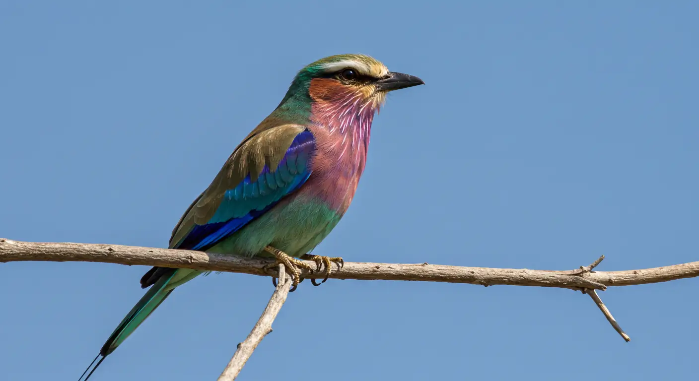 The Lilac-Breasted Roller is a colorful bird known for its bright feathers and bold flight. It has a lilac-colored chest, green head, and blue wings. This makes it one of the most eye-catching birds in Africa. Bird lovers often admire it in zoos or bird parks in the USA.
