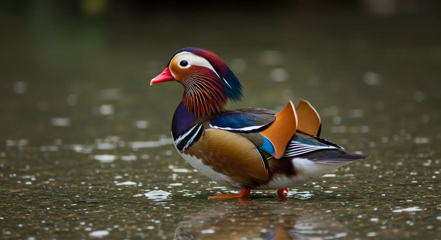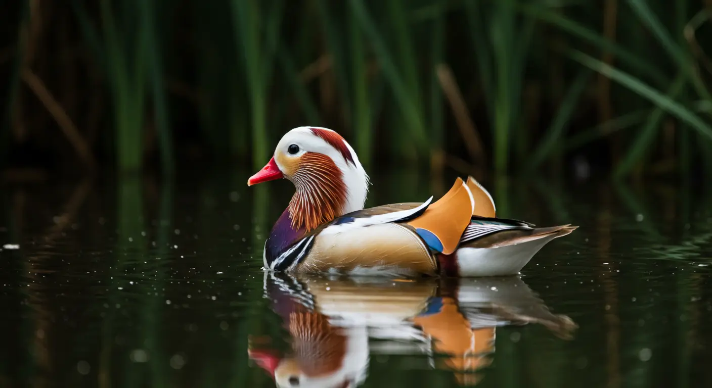 Male Mandarins have unique and upright orange feathers on their wings called “sails.” These sails stand out when the duck is at rest.