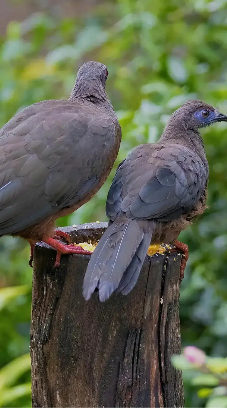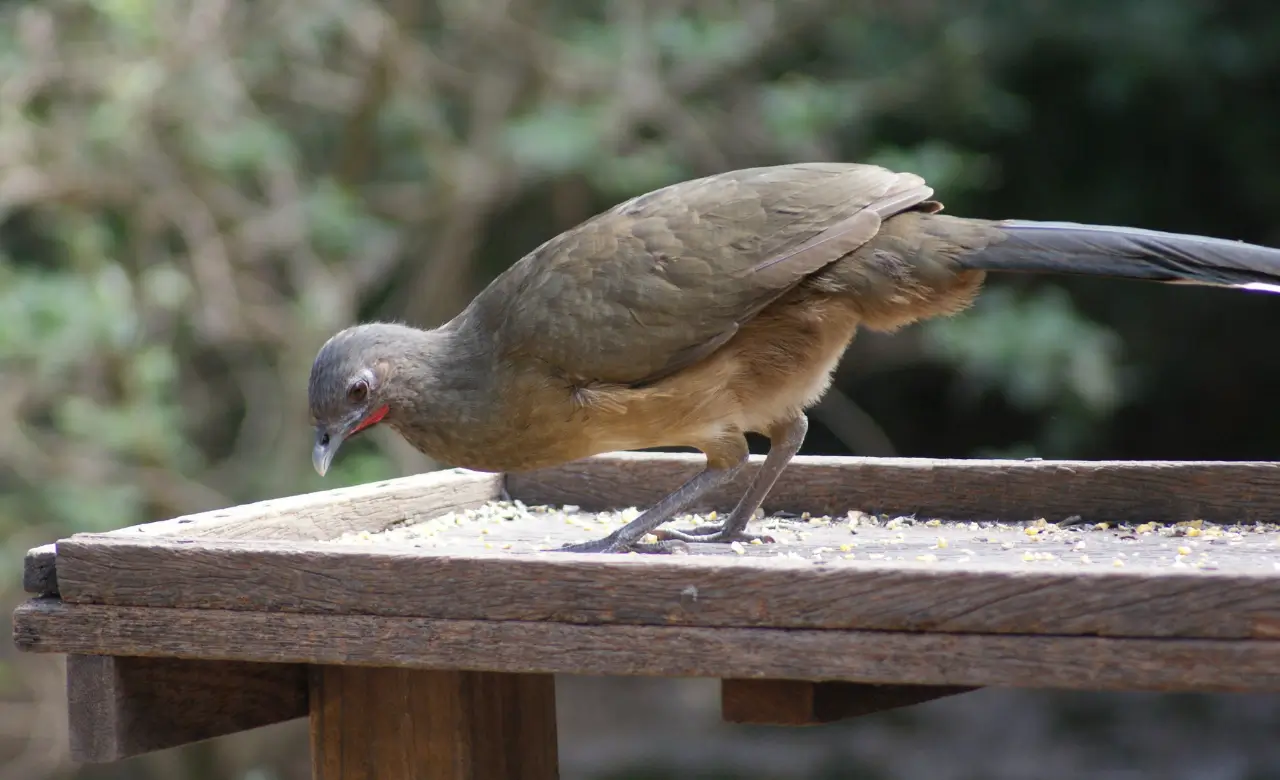 Related chachalacas sometimes visit gardens in southern Texas. They are drawn to fruit and even cat food. Locals describe them as surprisingly bold. They walk up close, making a racket and leaving feathers.