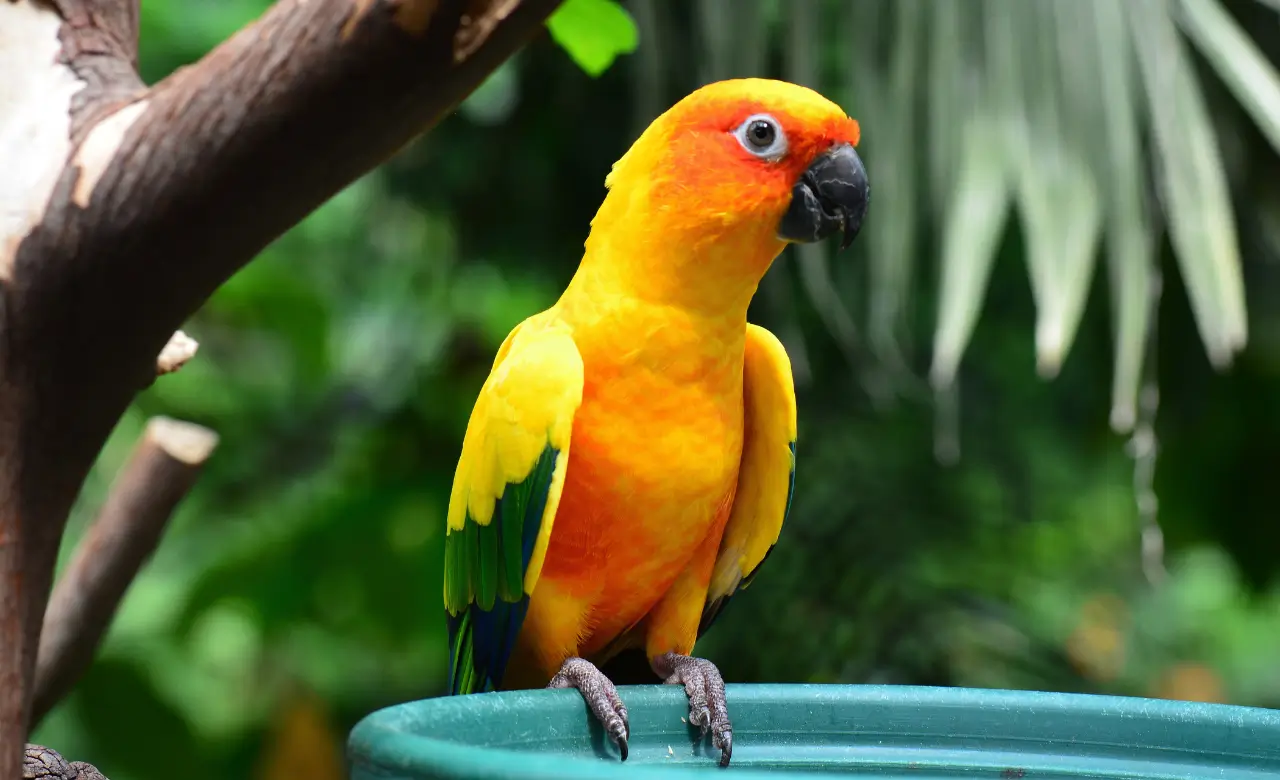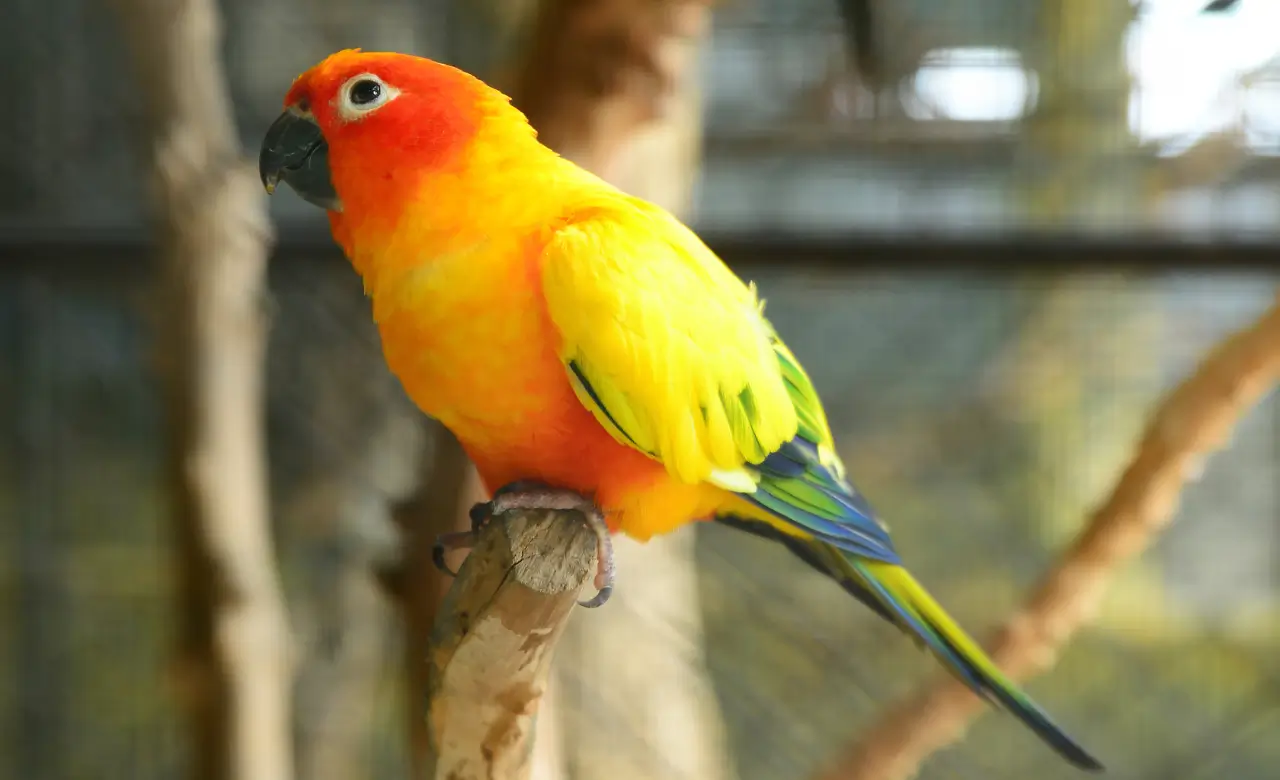 The Sun Conure is famous for its bright yellow, orange, and green feathers. Their colors shine even more in the sunlight. Bird lovers often admire them as one of the most beautiful pet birds. Their vivid colors make them stand out in any home. They are always called little bursts of sunshine.