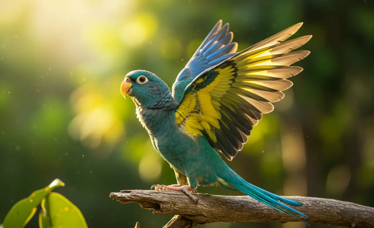 - Use natural morning light to capture the turquoise conure’s bright feather colors without harsh shadows.