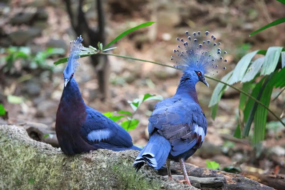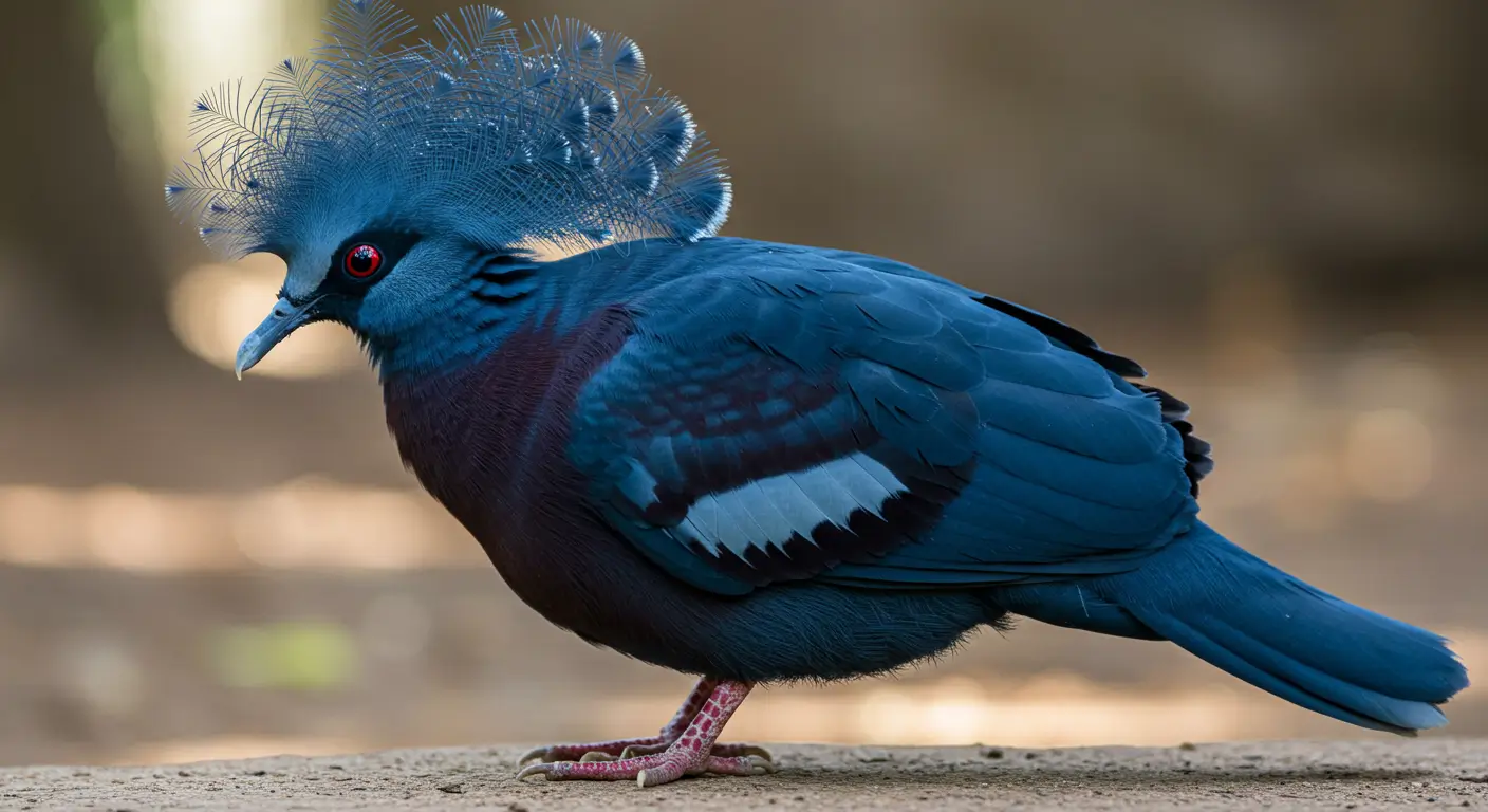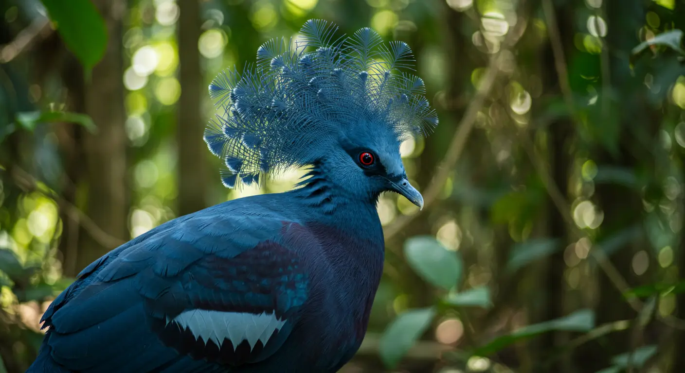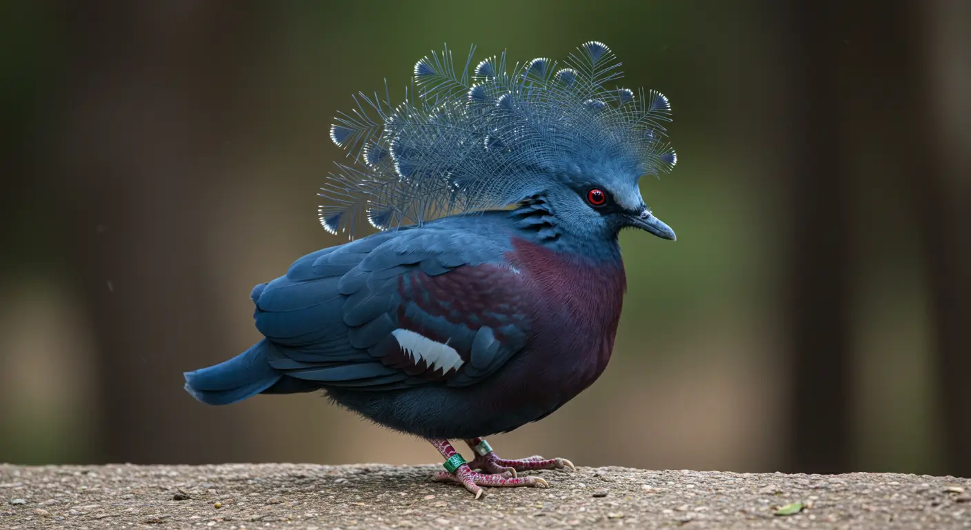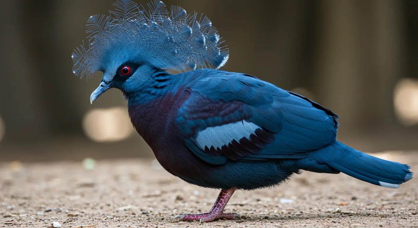 individual birds are often priced between $2,000 and $2,500. For instance, young Victoria Crowned Pigeons have been listed for sale at $2,000 each in the United States. The Victoria Crowned Pigeon lives around 15 years in the wild. The bird’s lifespan can reach up to 25 years in captivity. Zoos and aviaries in the USA provide safe environments that help extend their lifespan. This bird not only attracts people with its different appearance but also with its habits that only some birds possess. This bird is named after Queen Victoria of England because of its regal appearance. The crown of lacy blue feathers on its head resembles the royal headpieces worn by the queen. Its attractive posture and deep blue feathers also add to its majestic look. The Victoria crowned pigeon spends most of its time on the forest floor unlike most pigeons that prefer to rest in trees. It only flies up to make nest or escape predators. This behavior makes it similar to chickens or pheasants, rather than typical city pigeons. The male performs a graceful dance to impress the female when trying to mate. He bows repeatedly, spreads his tail, and makes deep booming calls. If the female is interested then she responds by softly cooing back. This different kind of ritual helps strengthen their bond. This species produces low and deep drumming calls instead of the usual cooing sounds pigeons make. These sounds can travel through dense forests. This helps them stay connected with their group. This special adaptation makes them different from other pigeons. Victoria crowned pigeons lay only one egg at a time, and the egg is a stunning pale blue color. This color helps the egg blend in with the light filtering through the trees. The parents take turns incubating it while making sure that the chick stays warm and safe. Both male and female Victoria crowned pigeons share responsibilities of raising the young ones unlike many birds where the female does most of the parenting. They take turns incubating the egg and feeding the chick and this teamwork helps their chick to grow strong. This species feeds its chicks with pigeon milk like other pigeons. This is a special nutrient-rich secretion from their crop. Both parents produce this milk, which is packed with proteins and fats. This helps the chick grow quickly in the first few weeks. This pigeon’s large size makes flying difficult, so it spends most of its time walking around the forest floor. This bird flaps its wings slowly and powerfully during flight. It can travel short distances, but it avoids flying unless necessary. Victoria crowned pigeons help spread seeds by eating fruits and berries. They drop seeds far from the parent tree which helps new plants grow after digesting the food. This process makes them important for maintaining the health of tropical forests. Victoria crowned pigeons prefer small groups called flocks. They stay together for safety and communicate using body language and sounds. This social behavior is rare among pigeons. These birds are classified as Near Threatened due to deforestation and hunting. Their stunning feathers make them a target for the illegal pet trade. Conservation efforts in zoos and wildlife reserves help protect them and raise awareness about their importance. The Victoria crowned pigeon can be tamed in captivity despite its wild nature. It recognizes caregivers and can develop trust over time. Some zoos even allow visitors to interact with them which makes them one of the friendly large pigeon species. Male and female Victoria Crowned Pigeons look very similar, but males tend to be slightly larger and have more pronounced crowns. Males usually perform courtship displays, including bowing and vocalizing, which females rarely do. These birds present a royal feel when they take the flight in the sky because of their distinguishing crown. Here are some places where these birds can be seen in the states of USA. Here are some tips to get good clicks of the Victoria Crowned Pigeon which can be a memory for you. This bird possess its own uniqueness in terms of appearance and the behavior in ecosystem. The social nature and closeness with humans make it one of the most attention seeking bird among public. This bird represents the royalty with its crown on the head. The males and females raise the kids together and fly in small flocks. You can see Victoria Crowned Pigeons in zoos like the San Diego Zoo, Bronx Zoo, and Smithsonian’s National Zoo. This bird is the largest pigeon species, known for its striking blue feathers, red eyes, and elegant lacy crest.